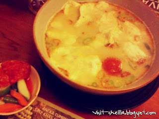 now it's the restaurant's special chicken satay.. consisted of ten skewers served with their special peanut sauce on top of a hot fire.. a unique way to serve satay.. the chicken fillet was very tender.. I think they used peanut sauce rather than crushed peanut.. it gives a whole new experience.. nicely done :)